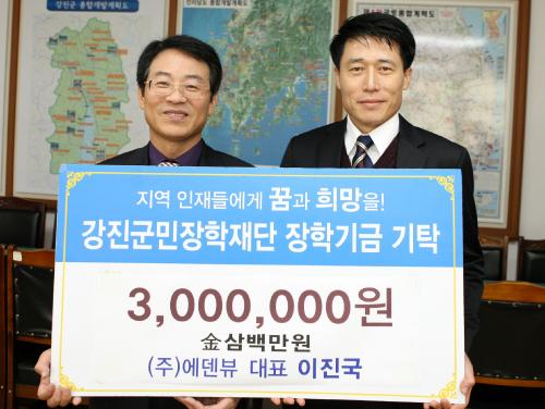 Áö³´Þ 31ÀÏ Àü³² °Áø±º °ÁøÀ¾ Ãâ½Å (ÁÖ)¿¡µ§ºä ÀÌÁø±¹ ´ëÇ¥°¡ °Áø±º¹ÎÀåÇÐÀç´Ü(ÀÌ»çÀå °Áø¿ø)¿¡ ÀåÇбâ±Ý 3¹é¸¸¿øÀ» Àü´ÞÇØ ÈÆÈÆÇÏ´Ù.