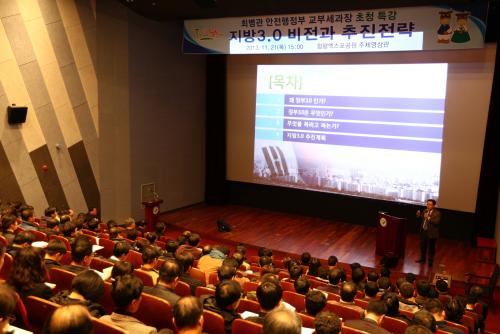 º»Ã», »ç¾÷¼Ò, À¾¡¤¸é °ø¹«¿ø 400¿© ¸íÀÌ Âü¼®ÇÑ °¡¿îµ¥ ÃÖº´°ü ¾ÈÀüÇàÁ¤ºÎ ±³ºÎ¼¼°úÀåÀ» ÃʺùÇØ ¡®Áö¹æ3.0 ºñÀü°ú ÃßÁøÀü·«¡¯À̶ó´Â ÁÖÁ¦·Î Ư°À» ÁøÇàÇß´Ù.