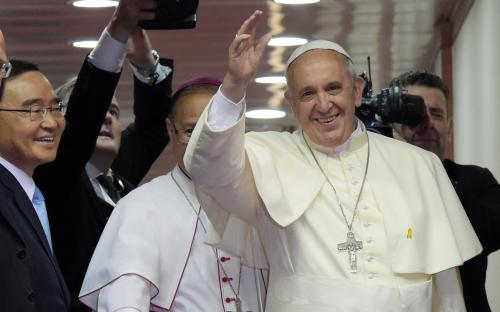 ±ÇÀ§¸¦ ¹ö¸° ³·Àº ÀÚ¼¼·Î ´«À» ¸ÂÃß°í ¸ÕÀú ´Ù°¡°¡ ¼ÕÀ» Àâ¾ÆÁÖ´Â ±³È²ÀÇ ¸ð½À¿¡ õÁÖ±³ÀεéÀº ¸»ÇÒ °Íµµ ¾ø°í ÀÏ¹Ý ±¹¹Î±îÁö °¨µ¿À» ¹Þ¾Ò´Ù.