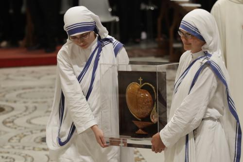 ¡®ºóÀÚÀÇ ¼º³à¡¯ Å×·¹»ç ¼ö³à(1910~1997)ÀÇ ½Ã¼º½ÄÀÌ 4ÀÏ ¿ÀÀü 10½Ã 30ºÐ(Çѱ¹½Ã°£ 4ÀÏ ¿ÀÈÄ 5½Ã 30ºÐ)ºÎÅÍ ¹ÙÆ¼Ä ¼º º£µå·Î ´ë¼º´ç ¾Õ ±¤Àå¿¡¼ ÆîÃÄÁ³´Ù.