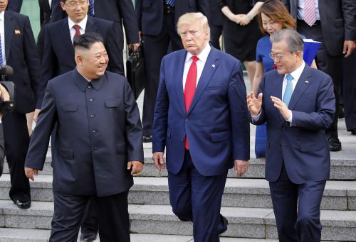 ¹® ´ëÅë·É°ú µµ³Îµå Æ®·³ÇÁ ¹Ì ±¹ ´ëÅë·É, ±èÁ¤Àº ºÏÇÑ ±¹¹«À§¿øÀåÀº 30ÀÏ ÆÇ¹®Á¡ °øµ¿°æºñ±¸¿ª(JSA) ³²Ãø Áö¿ª ÀÚÀ¯ÀÇ Áý ÀÏ´ë¿¡¼ ¸¸³µ´Ù. ³²ºÏ¹Ì 3ÀÚ Á¤»óÀÌ ÇÑ ÀÚ¸®¿¡ ¸ðÀÎ °ÍÀº ºÐ´Ü 70³â ¿ª»ç»ó óÀ½ÀÖ´Â ÀÏÀÌ´Ù.