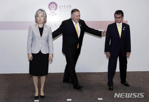 °°æÈ ¿Ü±³ºÎ Àå°üµµ ¹æÄÛ ÇѹÌÀÏ ¿Ü±³Àå°ü ȸÀÇ¿¡¼ GSOMIA ¹®Á¦¸¦ ¾ð±ÞÇßÁö¸¸, ÆûÆäÀÌ¿À ±¹¹«Àå°üÀÌ ´äº¯À» ÇÏÁö ¾ÊÀº °ÍÀ¸·Î ¾Ë·ÁÁ³´Ù. ±×¸¸Å ¹Ì±¹µµ GSOMIA ¹®Á¦¸¦ ¹Î°¨ÇÏ°Ô ¹Þ¾ÆµéÀδٴ °ÍÀ¸·Î Ç®À̵ȴÙ.