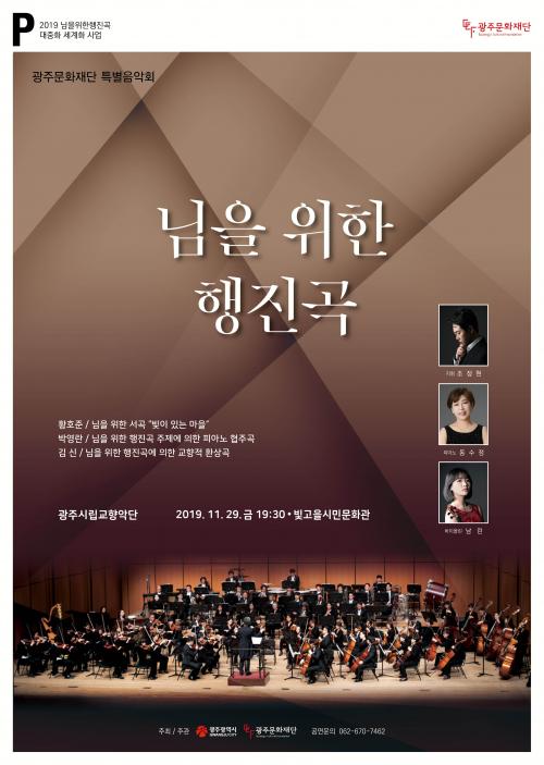 ±¤ÁÖ¹®ÈÀç´Ü Ưº°À½¾Çȸ ¡®´ÔÀ» À§ÇÑ ÇàÁø°î¡¯ÀÌ ¿À´Â 29ÀÏ(±Ý) ¿ÀÈÄ 7½Ã 30ºÐ ºû°íÀ»½Ã¹Î¹®È°ü¿¡¼ ¿¸°´Ù.