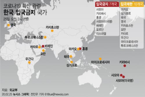 25ÀÏ ¿Ü±³ºÎ¿¡ µû¸£¸é À̳¯ ¿ÀÀü 2½Ã ±âÁØ Çѱ¹ÀÎ ÀÔ±¹±ÝÁö Á¶Ä¡¸¦ ³»¸®°Å³ª ÀÔ±¹ ÀýÂ÷¸¦ °ÈÇÑ ±¹°¡´Â ÃÑ 17°÷À¸·Î Áý°èµÆ´Ù. Àü³¯ ¿ÀÈÄ 2½Ã 15°³±¹¿¡¼ 2°÷ ´Ã¾î³µ´Ù.