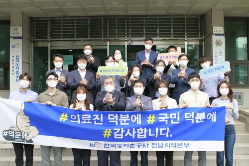 Çѱ¹³ó¾îÃ̰ø»ç Àü³²Áö¿ªº»ºÎ(º»ºÎÀå ¹ÚÁ¾È£)´Â 4ÀÏ Äڷγª19¹ÙÀÌ·¯½º ¿¹¹æ°ú ´ëÀÀÀ» À§ÇØ ³ë·ÂÇϰí ÀÖ´Â ÀÇ·áÁø¿¡°Ô °¨»ç¿Í Á¸°æÀÇ ¸¶À½À» ÀüÇÏ´Â ¡®´öºÐ¿¡ 縰Áö¡¯Ä·ÆäÀο¡ Âü¿©Çß´Ù.