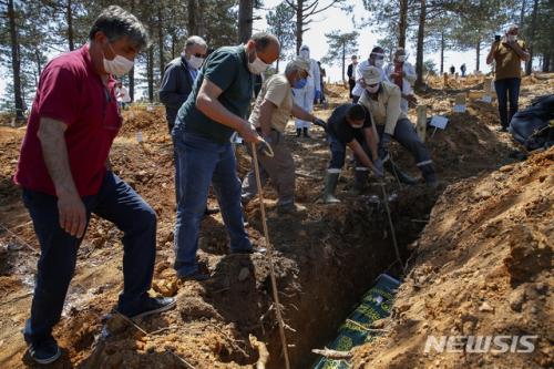 11ÀÏ(ÇöÁö½Ã°£) ÅÍŰ À̽ºÅººÒÀÇ ÇÑ °øµ¿¹¦Áö ½ÅÁ¾ Äڷγª¹ÙÀÌ·¯½º °¨¿°Áõ(Äڷγª19) »ç¸ÁÀÚ ¹¦¿ª¿¡¼ ¸¶½ºÅ©¸¦ ¾´ ¹¦Áö °ü°èÀÚµéÀÌ Äڷγª19·Î ¼ûÁø »ç¶÷ÀÇ °üÀ» ¸ÅÀåÇϰí ÀÖ´Ù. ·¹Á¦ÇÁ ŸÀÌÀÌÇÁ ¿¡¸£µµ¾È ´ëÅë·ÉÀº Äڷγª19 »ç·Ê°¡ ÁÙ¾îµé¸é¼ 'Á¤»óÈ ¹æ¾È'À» ¹ßÇ¥ÇßÁö¸¸ È®ÁøÀÚ°¡ ´Ã¾î³¯ °æ¿ì ´õ¿í °·ÂÇÑ Á¶Ä¡¸¦ ÃëÇÒ °ÍÀ̶ó°í ¹àÇû´Ù. ÅÍŰ´Â ±×µ¿¾È Äڷγª19 ¿ÏÀü ºÀ¼â ´ë½Å ÁÖ¸» ÅëÇà±ÝÁö µîÀ» ºÎ°úÇß¾ú´Ù.