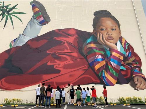 Å͹̳ΠµÚÆí °ñ¸ñ °Ç¹° º®¸é¿¡ ±×·ÁÁø ±×¸²Àº °¡·Î 22m, ¼¼·Î 19mÂ¥¸® ±¹³» ÃÖ´ë Å©±âÀÇ ÀÛǰÀ¸·Î, ±×·¡ÇÇÆ¼¸¦ ÅëÇØ ¼èÅðÇÑ °ñ¸ñ»ó±Ç¿¡ »õ·Î¿î Ȱ·ÂÀ» ºÒ¾î³Ö±â À§ÇØ µµ½ÃÀç»ý»ç¾÷ ÀÏȯÀ¸·Î ÁøÇàµÆ´Ù.