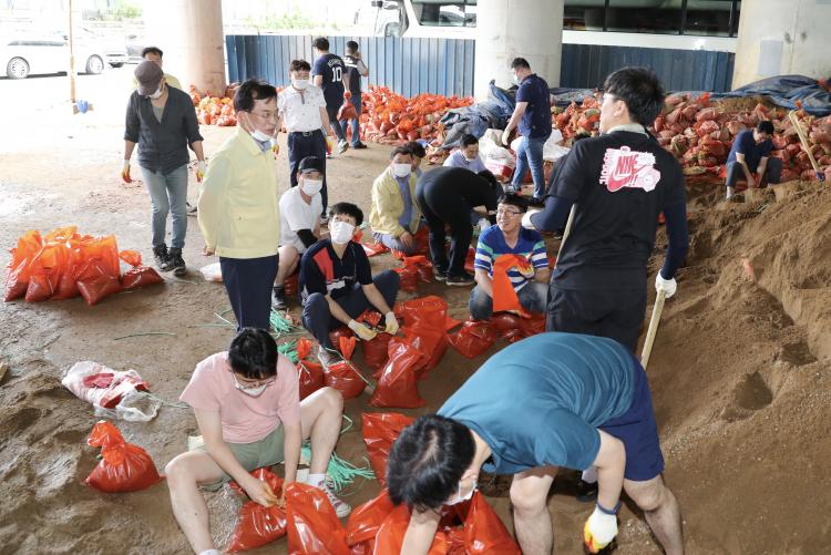 ±¤ÁÖ ±¤»ê±¸(±¸Ã»Àå ±è»ïÈ£)´Â 9ÀÏ ºñ»ó¿ë ¸ð·¡ÁÖ¸Ó´Ï 3000°³¸¦ ±ä±ÞÈ÷ Á¦ÀÛÇß´Ù. ±¤»ê±¸ °ø¹«¿ø 50¿©¸íÀº À̳¯ ¼ÛÁ¤IC °ø¿µÂ÷°íÁö¿¡¼ ÁÖȲ»ö ºñ´ÒºÀÅõ¿¡ Èë 1kgÀ» ´·¯ ´ã¾Æ ¹æ¼ö¿ë ¸ð·¡ÁָӴϸ¦ ¸¸µé¾ú´Ù. Á¦ÀÛÇÑ ¸ð·¡ÁÖ¸Ó´Ï´Â À̹ø ÁýÁßÈ£¿ì·Î ¹«³ÊÁø Á¦¹æÀÇ ÀÀ±Þº¹±¸¿Í 10ÀÏ ¿ÀÈĺÎÅÍ ¿µÇâÀ» ÁÙ Á¦5È£ ÅÂdz ¡®Àå¹Ì¡¯·Î ¿ì·ÁµÇ´Â Ãß°¡ ħ¼ö ÇÇÇØ¸¦ ¸·´Â ¿ëµµ·Î ¾²ÀδÙ.