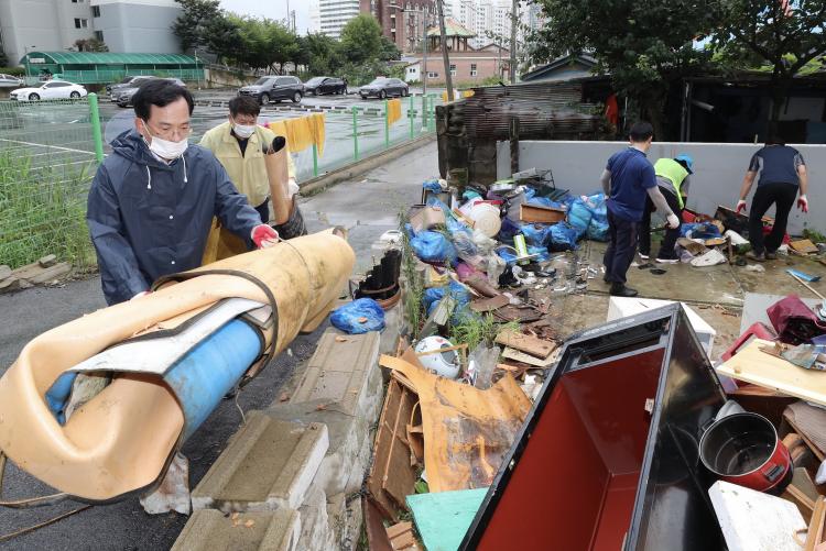 11ÀÏ ±è»ïÈ£ ±¤»ê±¸Ã»ÀåÀÌ °ø¹«¿øµé°ú ÁýÁßÈ£¿ì·Î ħ¼öµÈ ¼ÛÁ¤2µ¿ ½Å´ö¸¶À» ÁÖÅÃÀ» ã¾Æ ÇÇÇØº¹±¸¿¡ ³ª¼± ÁֹεéÀ» À§·ÎÇϰí, ¹°¿¡ Àá°Ü ¸ø¾²°Ô µÈ ÀåÆÇ°ú °¡±¸ µîÀ» Ä¡¿ì´Â µî ÀÌÀç¹ÎÀÇ ºü¸¥ ÀÏ»ó ã±â¸¦ µµ¿Ô´Ù.
