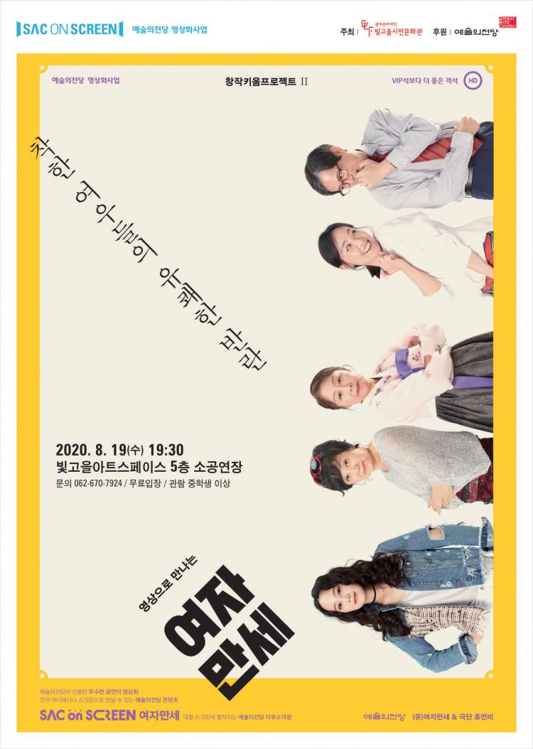 ±¤ÁÖ¹®ÈÀç´ÜÀº ¿À´Â 19ÀÏ ¿ÀÈÄ 7½Ã 30ºÐ ºû°íÀ»¾ÆÆ®½ºÆäÀ̽º ¼Ò°ø¿¬Àå¿¡¼ »è¿Â½ºÅ©¸°(SAC on Screen) ÇÁ·Î±×·¥À¸·Î ¿¬±Ø ¡®¿©ÀÚ¸¸¼¼¡¯¸¦ »ó¿µÇÑ´Ù.