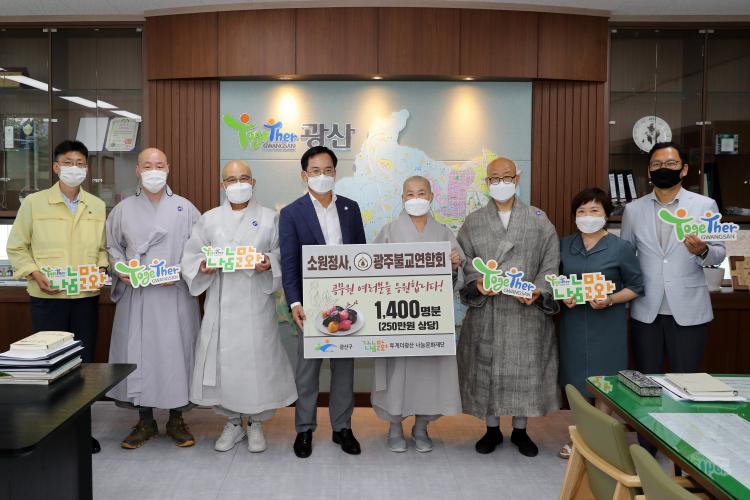 28ÀÏ ±¤ÁÖ±¤¿ª½ÃÀÇ »çÂû ¼Ò¿øÁ¤»ç¿Í ±¤ÁÖºÒ±³¿¬ÇÕȸ°¡ Äڷγª19¿Í ¼öÇØ ±Øº¹ ÇöÀå¿¡¼ ÀÏÇÏ´Â °ø¹«¿øµéÀ» À§·ÎÇϱâ À§ÇØ 1,400¿©¸íÀÌ ¸ÔÀ» ¼ö ÀÖ´Â 250¸¸¿ø »ó´çÀÇ ¡®Èû³»¶ó °Ý·Á ¶±¡¯À» ±¤»ê±¸¿¡ Àü´ÞÇß´Ù.
