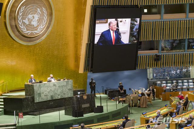 Æ®·³ÇÁ ´ëÅë·ÉÀº 22ÀÏ(ÇöÁö½Ã°£) »çÀü ³ìÈÇÑ Á¦75Â÷ À¯¿£ ÃÑȸ Á¤»ó È»ó ¿¬¼³¿¡¼ ¿Ü±³ Çö¾È°ú °ü·ÃÇØ Áßµ¿ ÆòÈÇùÁ¤ ü°á µîÀ» ¼º°ú·Î ³»¼¼¿üÁö¸¸ ºÏÇÑ¿¡ ´ëÇØ¼± ¾ð±ÞÇÏÁö ¾Ê¾Ò´Ù.