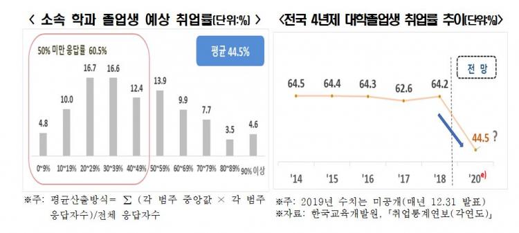 2014³âºÎÅÍ 2018³â±îÁö Àü±¹ 4³âÁ¦ ´ëÇÐÁ¹¾÷»ýµéÀÇ ½ÇÁ¦ Ãë¾÷·üÀÌ 62.6~64.5% ¼öÁØÀ̾úÀ½À» °í·ÁÇϸé, ¿ÃÇØ ´ëÇÐÁ¹¾÷»ý ¿¹»ó Ãë¾÷·ü 44.5%´Â ¸Å¿ì ºñ°üÀûÀÎ Àü¸ÁÀÌ´Ù.