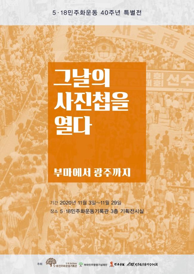 ±¤Áֽà 5¡¤18¹ÎÁÖȿ±â·Ï°üÀÌ ºÎ¸¶Àç´Ü°ú ºÎ»ê¹ÎÁÖ°ø¿ø, ¹ÎÁÖȿ±â³ä»ç¾÷ȸ µî°ú °øµ¿À¸·Î 3ÀϺÎÅÍ 29ÀϱîÁö 5¡¤18±â·Ï°ü ±âȹÀü½Ã½Ç¿¡¼ 5¡¤18¹ÎÁÖȿ 40ÁÖ³â Æ¯º°Àü ¡®±×³¯ÀÇ »çÁøÃ¸À» ¿´Ù ; ºÎ¸¶¿¡¼ ±¤ÁÖ±îÁö¡¯¸¦ °³ÃÖÇÑ´Ù.