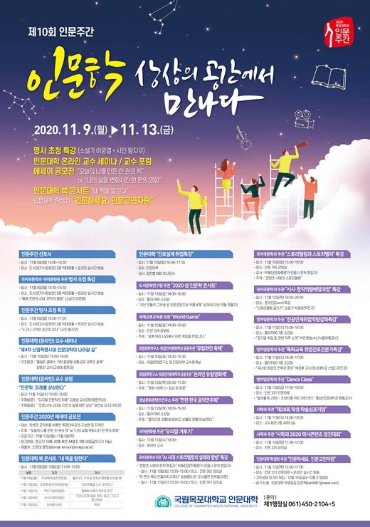 ±¹¸³¸ñÆ÷´ëÇб³(ÃÑÀå ¹Ú¹Î¼) Àι®´ëÇÐ(ÇÐÀå ¹èÇö)Àº ¿À´Â 11¿ù 9ÀÏ(¿ù)ºÎÅÍ 13ÀÏ(±Ý)±îÁö¸¦ ¡®Á¦10ȸ Àι®ÁÖ°£¡¯À¸·Î ¼±Æ÷Çϰí Àι®Çаú °ü·ÃµÈ ¸í»ç ÃÊû Ư°, ºÏ ÄܼƮ, ¿¡¼¼ÀÌ °ø¸ðÀü, ±³¼ö Æ÷·³, ÇлýÇмú ½ÉÆ÷Áö¾ö, ¹Ú¹°°ü Ưº°Àü, ¿ì¸®¸» °Ü·ç±â, À¯·´¿ÍÀÎÃàÁ¦, ¼¶ Àι®ÇÐ ÄܼƮ µî ´Ùä·Î¿î Çà»ç¸¦ °³ÃÖÇÒ ¿¹Á¤À̶ó°í ¹àÇû´Ù.