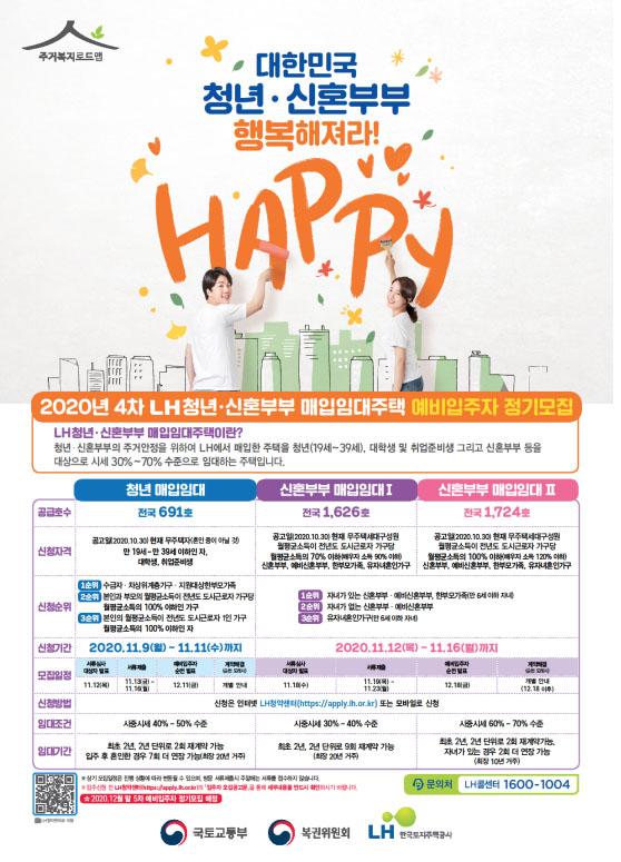 Çѱ¹ÅäÁöÁÖÅðø»ç(LH)´Â û³â°ú ½ÅÈ¥ºÎºÎ µîÀ» ´ë»óÀ¸·Î ¿ÃÇØ 4Â÷ ¸ÅÀÔÀÓ´ëÁÖÅà 4041°¡±¸¿¡ ´ëÇÑ ÀÔÁÖÀÚ¸¦ ¸ðÁýÇÑ´Ù°í 9ÀÏ ¹àÇû´Ù.