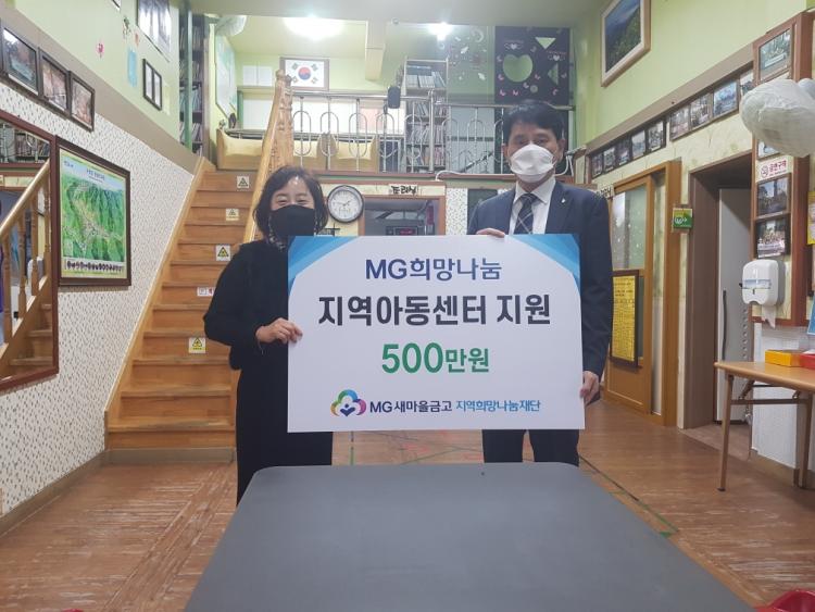 MG»õ¸¶À»±Ý°í Áö¿ªÈñ¸Á³ª´®Àç´Ü(ÀÌ»çÀå ¹ÚÂ÷ÈÆ, ÀÌÇÏ MG»õ¸¶À»±Ý°í Àç´Ü)Àº 11¿ù 23ÀÏ ¿ù¿äÀÏ, ¼¶Áö»ç¶ûÁö¿ª¾Æµ¿¼¾ÅÍ¿¡¼ Á¤ÂùÈ£ »õ¸¶À»±Ý°íÁß¾Óȸ ±¤ÁÖÀü³²Áö¿ªº»ºÎÀå°ú ¼¶Áö»ç¶ûÁö¿ª¾Æµ¿¼¾ÅÍ ÃÖÈñ¼÷ ¼¾ÅÍÀå ¹× °ü°èÀÚµéÀÌ Âü¼®ÇÑ °¡¿îµ¥ ¡®MGÈñ¸Á³ª´® Áö¿ª¾Æµ¿¼¾ÅÍ Áö¿ø»ç¾÷¡¯ Àü´Þ½ÄÀ» °³ÃÖÇß´Ù.