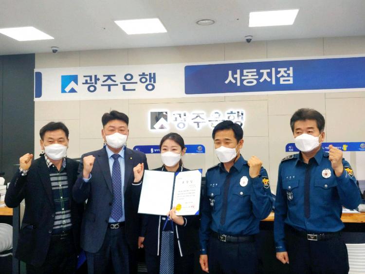 ±¤ÁÖÀºÇà(ÀºÇàÀå ¼ÛÁ¾¿í)Àº ±¤ÁÖ³²ºÎ°æÂû¼(¼Àå Á¶±ÔÇâ)·ÎºÎÅÍ º¸À̽ºÇÇ½Ì ¿¹¹æ¿¡ ´ëÇÑ °ø·Î·Î ǥâÀåÀ» ¼ö¿©¹Þ¾Ò´Ù°í ¹àÇû´Ù.