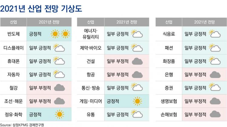 »ïÁ¤KPMG´Â ¡®2021³â ±¹³» ÁÖ¿ä »ê¾÷ Àü¸Á¡¯ º¸°í¼¸¦ ÅëÇØ ¹ÝµµÃ¼, Á¤À¯¡¤ÈÇÐ, °ÔÀÓ, µð½ºÇ÷¹ÀÌ, ÈÞ´ëÆù, ÀÚµ¿Â÷ µî ±¹³» ÁÖ¿ä 21°³ »ê¾÷º° Àü¸Á°ú ´ëÀÀ Àü·«À» Á¦½ÃÇϰí À̰°ÀÌ 28ÀÏ ¹àÇû´Ù.