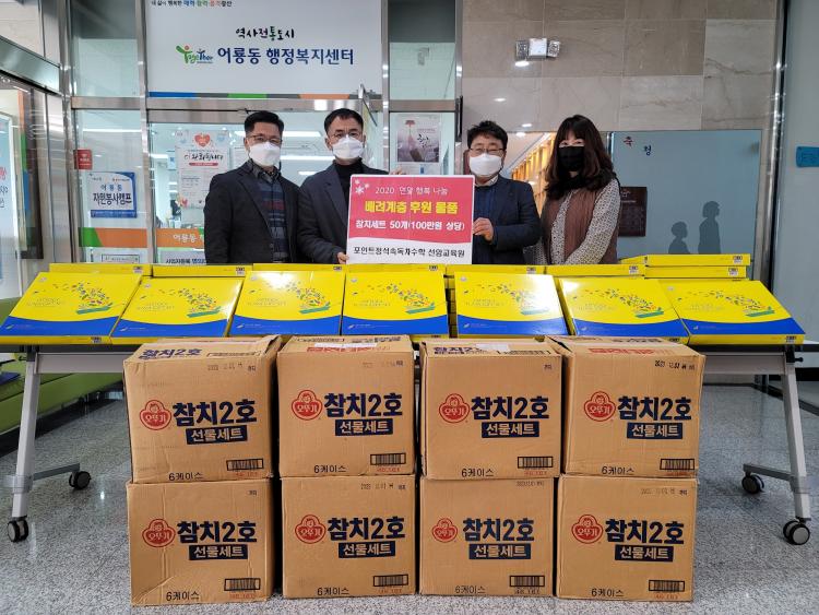 23ÀÏ Æ÷ÀÎÆ®Á¤¼®¼Óµ¶¡¤Â÷¼öÇÐ ¼±¾Ï±³À°¿ø(¿øÀå À¯È¿°æ)ÀÌ ¿¬¸»À» ¸Â¾Æ ¾î·æµ¿ ¹è·Á°èÃþ¿¡°Ô ÀüÇØ´Þ¶ó¸ç 100¸¸¿ø »ó´çÀÇ ÂüÄ¡ 50¼¼Æ®¸¦ ¾î·æµ¿ ÇàÁ¤º¹Áö¼¾ÅÍ¿¡ ¸Ã°å´Ù.