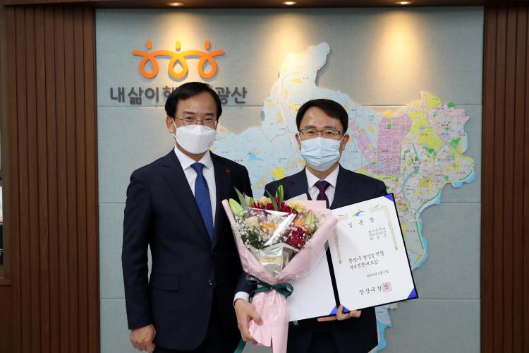 À̵·±¹ ºÎÀÌ»ç°üÀÌ 4ÀÏ ±¤»ê±¸Ã»¿¡¼ °£¼ÒÇÏ°Ô ¿¸° ¿Â¶óÀÎ ½Ã¹«½Ä ¹× ÃëÀӽĿ¡¼ ±¤»ê±¸ ºÎ±¸Ã»Àå¿¡ ÃëÀÓÇß´Ù.