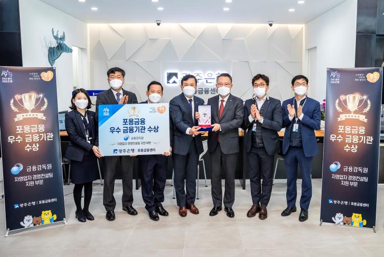 ±¤ÁÖÀºÇà(ÀºÇàÀå ¼ÛÁ¾¿í)Àº ±ÝÀ¶°¨µ¶¿ø(¿øÀå À±¼®Çå)À¸·ÎºÎÅÍ Æ÷¿ë±ÝÀ¶ °æ¿µÄÁ¼³ÆÃ Áö¿ø ºÎ¹® ¿ì¼ö»óÀ» ¼ö»óÇß´Ù°í ¹àÇû´Ù.