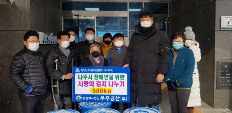 ³ªÁֽà ¿Õ°î¸é ¼ÛÁ׸®¿¡¼ ȸ»ç¸¦ ¿î¿µÇÏ´Â ³ó¾÷ȸ»ç¹ýÀÎ ¹«ÁÖ°ø»ê(ÁÖ) ³²½Ä ´ëÇ¥´Â ÃÖ±Ù Àå¾ÖÀÎ ¿¬ÇÕȸ°ü¿¡¼ Àå¾ÖÀÎÀ» À§ÇÑ ¡®»ç¶ûÀÇ ±èÄ¡(500kg ½Ã°¡ 800¸¸¿ø) ³ª´©±â¡¯ Çà»ç¸¦ °¡Á³´Ù.
