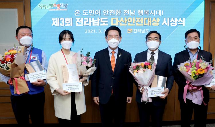 Àü³²µµ´Â 22ÀÏ µµÃ» Á¤¾à¿ë½Ç¿¡¼ µµ¹Î Àç³ÀçÇØ ¿¹¹æ¿¡ ¾ÕÀå¼°í ¾ÈÀü¹®È È®»ê¿¡ ±â¿©ÇÑ 3°³ ºÐ¾ß 9¸í¿¡°Ô Á¦3ȸ Àü³²µµ ´Ù»ê¾ÈÀü´ë»óÀ» ¼ö¿©Çß´Ù.