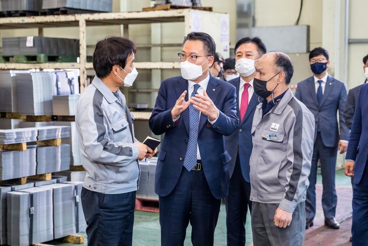 Áö³ 5ÀÏ¿¡´Â °íÈﱺ ½ºÆ¼·ÎÆûÁ¦Ç° Á¦Á¶¾÷ü ¢ßÈ¿°æ(´ëÇ¥ ÃÖÀÎÈ¿)°ú ±¤ÁÖ ±¤»ê±¸ ¿ëµ¿ ÀÚµ¿Â÷ºÎǰ Á¦Á¶¾÷ü ¢ß´ë½ÅÅ×Å©(´ëÇ¥ ±èÁ¾½Ä)¸¦ ¹æ¹®ÇØ ÀÓÁ÷¿øµé°ú ¸é´ãÀ» °¡Á³´Ù.