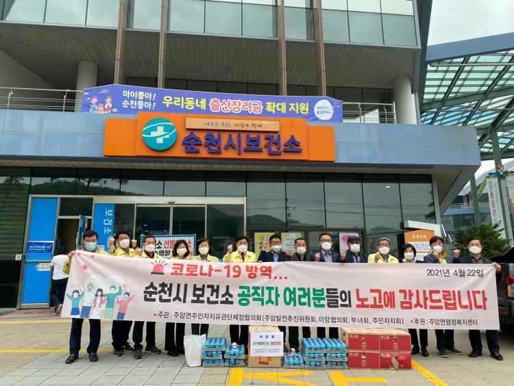 ¼øÃµ½Ã Á־ϸé ÁÖ¹ÎÀÚÄ¡ À¯°ü´ÜüÀåÇùÀÇȸ(Á־ϹßÀüÃßÁøÀ§¿øÈ¸, ÀÌÀåÇùÀÇȸ, ºÎ³àȸ, ÁÖ¹ÎÀÚġȸ)°¡ Äڷγª19·Î °í»ýÇÏ´Â ¼øÃµ½Ã º¸°Ç¼Ò Á÷¿øµé¿¡°Ô Çܹö°Å 300¼¼Æ®¸¦ Àü´ÞÇß´Ù.