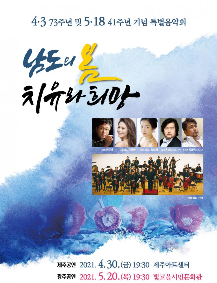 Á¦ÁÖ 4¡¤3Ç×ÀïÀÇ ÆòÈÁ¤½Å°ú ±¤ÁÖ 5¡¤18¹ÎÁÖȿÀÇ ¹ÎÁÖÁ¤½ÅÀÌ À½¾ÇÀ¸·Î ¸¸³´Ù. ±¤ÁÖ¹®ÈÀç´ÜÀº ¿À´Â 20ÀÏ ¿ÀÈÄ 7½Ã30ºÐ ºû°íÀ»½Ã¹Î¹®È°ü¿¡¼ Á¦ÁÖ 4¡¤3 73ÁÖ³â ¹× ±¤ÁÖ 5¡¤18 41Áֳ⠱â³ä Ưº°À½¾Çȸ¸¦ ¼±º¸Àδٰí 3ÀÏ ¹àÇû´Ù.