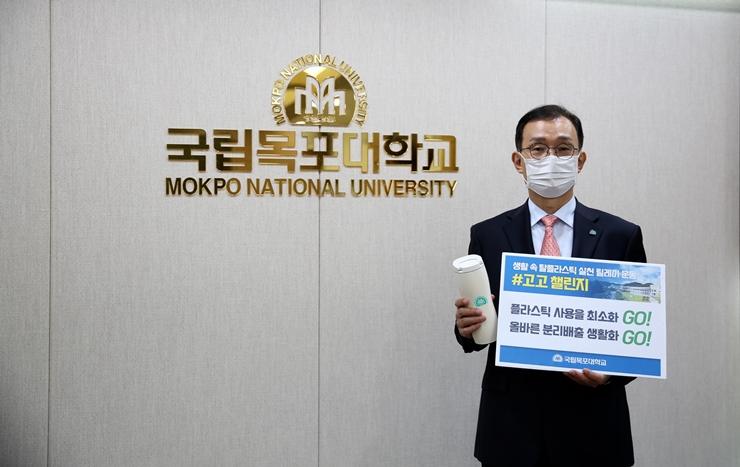 ¸ñÆ÷´ëÇб³ ¹Ú¹Î¼ ÃÑÀåÀº ÅÒºí·¯¸¦ µé°í ¡°ÇÃ¶ó½ºÆ½ »ç¿ëÀ» ÃÖ¼ÒÈGO!, ¿Ã¹Ù¸¥ ºÐ¸®¹èÃâ »ýȰÇÏGO!¡±¶ó´Â ¹®±¸¸¦ ºñÃ߸ç, °í°í縰Áö Ä·ÆäÀο¡ Âü¿©Çß´Ù.