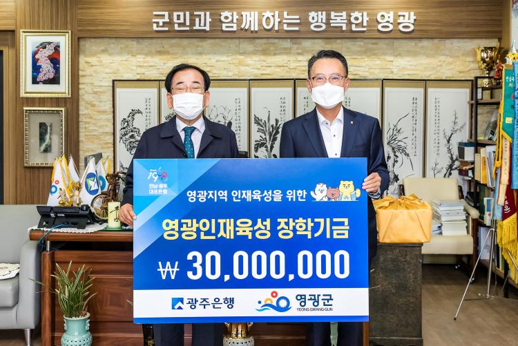 ±¤ÁÖÀºÇàÀº 2018³âºÎÅÍ ¸Å³â 3õ¸¸¿ø¾¿ ¿µ±¤±º ÀÎÀçÀ°¼º±â±Ý¿¡ ÀåÇбâ±ÝÀ» Ã⿬ÇÑ ¹Ù ÀÖÀ¸¸ç, À̹ø Àü´Þ½Ä¿¡¼µµ ¿µ±¤±ºÃ»¿¡ 3õ¸¸¿øÀÇ ÀåÇбâ±ÝÀ» Ãâ¿¬ÇØ ¿µ±¤±º ±³À°¹ßÀü ¹× Áö¿ªÀÎÀç ¾ç¼ºÀ» À§ÇØ Èû¾µ ¿¹Á¤ÀÌ´Ù.