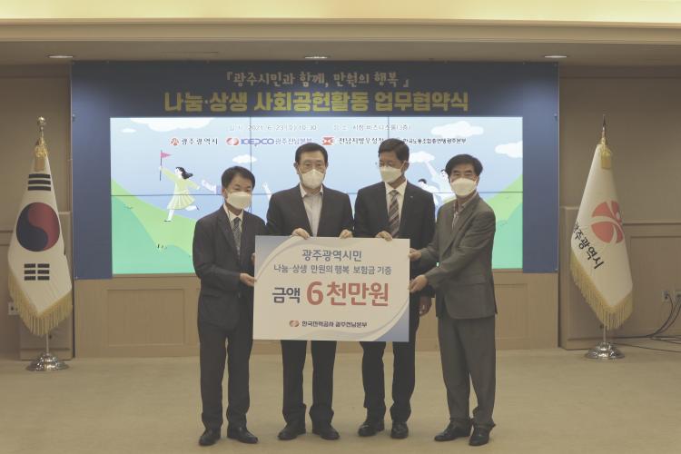 Àü³²Áö¹æ¿ìÁ¤Ã»°ú Çѱ¹Àü·Â±¤ÁÖÀü³²º»ºÎ, ±¤ÁÖ½Ã, Çѱ¹³ëÃѱ¤ÁÖº»ºÎ´Â 23ÀÏ ±¤ÁÖ½Ãû¿¡¼ Àú¼ÒµæÃþÀ» ´ë»óÀ¸·Î ¿ìü±¹ °øÀͺ¸Çè ¹«·á°¡ÀÔÀ» Áö¿øÇϱâ À§ÇÑ ¾÷¹«Çù¾àÀ» ü°áÇß´Ù. À̹ø Çù¾àÀº ¿ìü±¹ °øÀͺ¸ÇèÀΡ®¸¸¿øÀÇ Çູº¸Ç衯 º¸Çè·á Àü¾×À» Áö¿øÇÏ´Â °ÍÀ¸·Î ±¤ÁֽùΠ6000¸íÀÌ °¢Á¾ ÀçÇØ»ç°í¸¦ ´çÇßÀ» ¶§ º¸Çè±Ý Áö±Þ ÇýÅÃÀ» ¹ÞÀ» ¼ö ÀÖ°Ô µÈ´Ù.