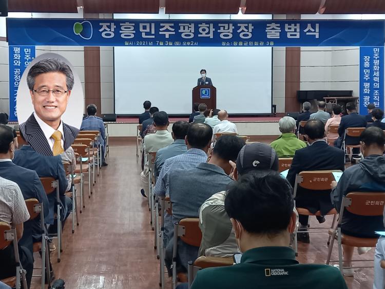´õºÒ¾î¹ÎÁÖ´çÀÇ À¯·ÂÇÑ ´ë¼± ÁÖÀÚÀÎ ÀÌÀç¸í °æ±âµµÁö»çÀÇ Àü±¹ ÁöÁö¸ðÀÓÀÎ ÀåÈï¹ÎÁÖÆòȱ¤ÀåÀÌ 3ÀÏ ¿ÀÈÄ 2½Ã ÀåÈﱺ¹Îȸ°ü 3Ãþ ´ëȸÀǽǿ¡¼ Ãâ¹ü½ÄÀ» °®°í ³»³â ´ëÅë·É¼±°Å¸¦ ÇâÇÑ ´ëÀåÁ¤¿¡ µ¹ÀÔÇß´Ù. Á¶Àçȯ ÀåÈï¹ÎÁÖÆòȱ¤Àå »óÀÓ´ëÇ¥´Â Ãâ¹ü»ç¸¦ ÅëÇØ ¡°¼ºÀåÇÏ´Â ¹ÎÁÖÁÖÀÇ¿¡¼ º¸´Ù ¼º¼÷ÇÑ ¹ÎÁÖÁÖÀǰ¡ Àý½ÇÈ÷ ¿ä±¸µÇ°í ÀÖ´Ù¡± ¸ç ¡°ÁøÁ¤ÇÑ ¹ÎÁÖ, ÁøÁ¤ÇÑ ÆòÈ, ÁøÁ¤ÇÑ °øÁ¤ÀÇ »çȸ¸¦ ±¸ÇöÇØ ³ª°¡´Âµ¥ ¿À´Ã Âü¼®ÇÑ µ¿ÁöµéÀÌ ¹ÎÁÖÈÀÇ ºû°ú ¼Ò±ÝÀÌ µÉ °Í¡±À̶ó¸ç °Ý·ÁÇß´Ù.