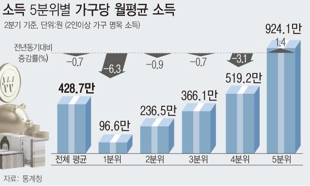 2ºÐ±â Áß 1ºÐÀ§ °¡±¸°¡ ¹ú¾îµéÀÎ ¼ÒµæÀº 96¸¸6000¿øÀ¸·Î Áö³ÇØ °°Àº ºÐ±âº¸´Ù 6.3% ÁÙ¾ú´Ù. ÀÌ´Â °°Àº ºÐ±â ±âÁØÀ¸·Î 2018³â(-16.7%) ÀÌÈÄ 3³â ¸¸¿¡ ÃÖ´ë °¨¼Ò´Ù.