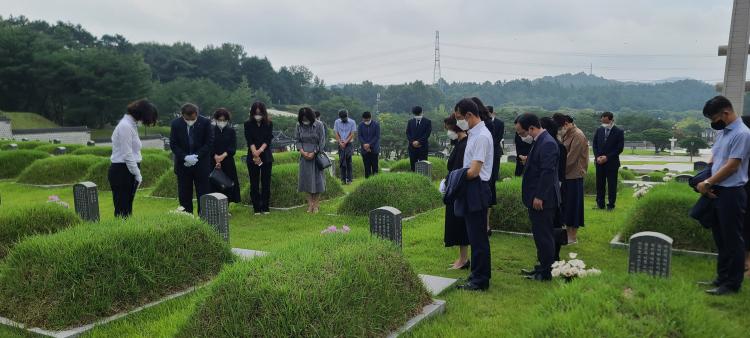±¤Áֽñ³À°Ã»ÀÌ Áö³´Þ 31ÀÏ ¿ÀÀü 5¡¤18¹ÎÁÖȿ ´ç½Ã Èñ»ý´çÇÑ ¿µ·ÉÀÇ ³ÌÀ» ±â¸®±â À§ÇØ ±¹¸³5¡¤18¹ÎÁÖ¹¦Áö¸¦ Âü¹èÇß´Ù. Âü¹è¿¡´Â 9¿ù1ÀÏÀÚ À¯¡¤ÃÊ¡¤Áßµî ±³À塤±³°¨¡¤±³À°Àü¹®Á÷¿ø ½ÂÁø ¹× ÀüÁ÷ÀÚ 71¸íÀÌ Âü¿©Çß´Ù. Âü¹è´Â Äڷγª19 ¹æ¿ª ¼öÄ¢À» ÁؼöÇϸç 3ȸ·Î ³ª´² ½Ç½ÃµÆ´Ù.