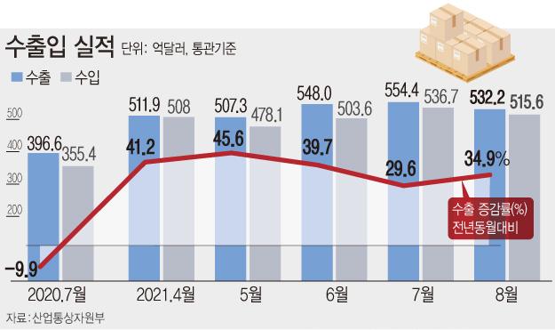 8¿ù ¼öÃâ 532.3¾ïºÒ¡¦6°³¿ù ¿¬¼Ó 5¹é¾ïºÒ µ¹ÆÄ