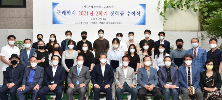 Çлç ÀÔ»ç»ý 24¸í¿¡°Ô ÃÑ 2000¸¸¿øÀÇ ÀåÇбÝÀÌ ¼ö¿©µÆ´Ù. ±è¼øÈ£ ±¸·Ê±º¼ö, ±¸·ÊÀåÇÐȸ ÀÌ»ç, Àç°æ±¸·Ê±ºÇâ¿ì µî 20¿© ¸íÀÌ Âü¼®ÇØ ÀåÇбÝÀ» Àü´ÞÇϰí ÀÔ»ç»ýÀ» °Ý·ÁÇß´Ù.