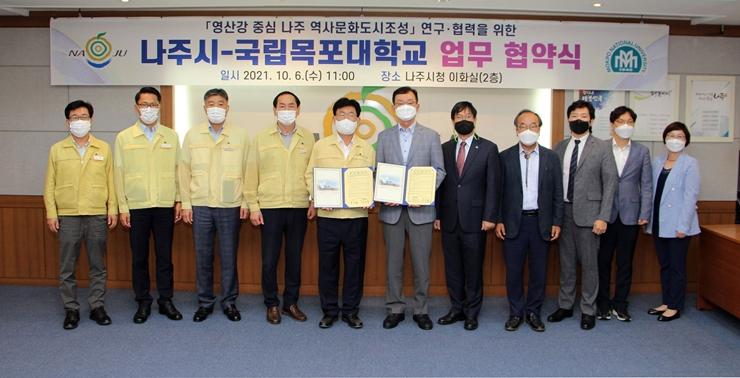 ±¹¸³¸ñÆ÷´ëÇб³(ÃÑÀå ¹Ú¹Î¼)¿Í ³ªÁÖ½Ã(½ÃÀå °ÀαÔ)´Â 6ÀÏ ¿ÀÀü ³ªÁÖ½Ãû ÀÌȽǿ¡¼ ¡®¿µ»ê° Á᫐ ³ªÁÖ ¿ª»ç¹®Èµµ½Ã Á¶¼º¡¯ ¿¬±¸ ¹× Çù·ÂÀ» À§ÇÑ MOU¸¦ ü°áÇß´Ù.