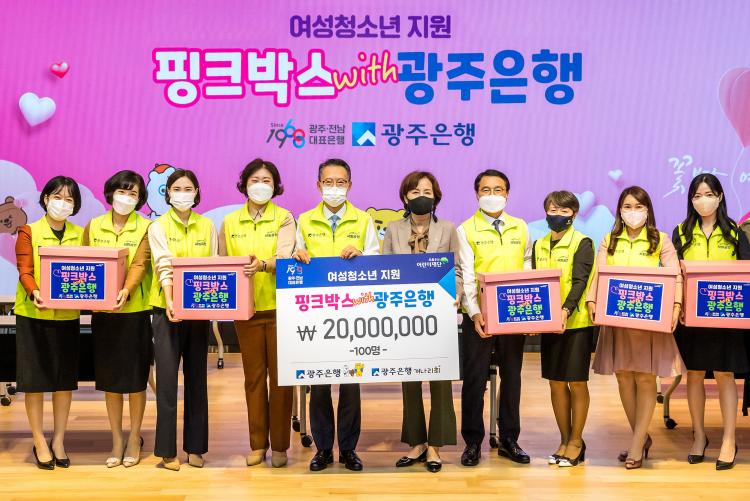 ±¤ÁÖÀºÇà(ÀºÇàÀå ¼ÛÁ¾¿í)Àº º»Á¡¿¡¼ ¼ÛÁ¾¿í ±¤ÁÖÀºÇàÀå°ú ±èÀº¿µ ÃÊ·Ï¿ì»ê¾î¸°ÀÌÀç´Ü ±¤ÁÖÁö¿ªº»ºÎÀå, ÃÖ¼±¿µ ±¤ÁÖÀºÇà °³³ª¸®È¸Àå µîÀÌ Âü¼®ÇÑ °¡¿îµ¥ Áö¿ª Ãë¾à°èÃþ ¿©¼º û¼Ò³â 100¸í¿¡°Ô ÃÑ 2õ¸¸¿ø »ó´çÀÇ ¡®ÇÎÅ©¹Ú½º¡¯¸¦ Àü´ÞÇß´Ù°í ¹àÇû´Ù.