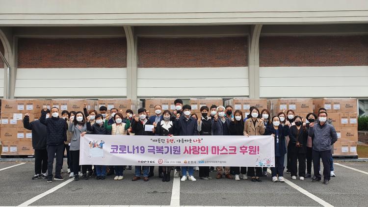 ¼øÃµ½Ã °ü°èÀÚ´Â ¡°¸¶½ºÅ©¸¦ ±âºÎÇØÁֽŠ¢ßTOPTEC°ú ÈÄ¿øÀ» ¿¬°èÇØ ÁֽŠ(»ç)Èñ¸ÁÀ»³ª´©´Â»ç¶÷µé¿¡ °¨»çµå¸°´Ù¡±¸ç ¡°»çȸº¹Áö½Ã¼³ »ýȰÀÚ ¹× ÀÌ¿ëÀڵ鿡 Å« ÈûÀÌ µÇµµ·Ï Àß Àü´ÞÇϰí, 29¸¸ ¼øÃµ½Ã¹ÎÀÌ ÇϷ绡¸® ÀÏ»óÀ» ȸº¹ÇÒ ¼ö ÀÖµµ·Ï ³ë·ÂÇϰڴ١±°í ÀüÇß´Ù.