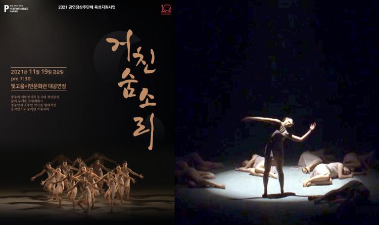 ºñ»ó¹«¿ë´ÜÀº 19ÀÏ ¿ÀÈÄ 7½Ã30ºÐ ºû°íÀ»½Ã¹Î¹®È°ü 2Ãþ °ø¿¬Àå¿¡¼ ¡®°ÅÄ£¼û¼Ò¸®¡¯¸¦ ¹«´ë¿¡ ¿Ã¸°´Ù°í 10ÀÏ ¹àÇû´Ù. ÀÛǰÀº 3¡¤1¿îµ¿°ú ´ëÇѹα¹ÀÓ½ÃÁ¤ºÎ ¼ö¸³ 100ÁÖ³âÀ» ¸ÂÀÌÇØ Áö³ÇØ ÃÊ¿¬µÆ´Ù. µ¶¸³¿îµ¿¿ª»ç¸¦ Ʋ¿¡ ¾ô¸ÅÀÌÁö ¾Ê´Â Çö´ë¹«¿ëÀ¸·Î ÇØ¼®ÇØ ±¤ÁÖÀÇ ÀúÇ×Á¤½Å°ú µ¿½Ã´ë û³âµéÀÇ »îÀÇ ¹«°Ô¸¦ Ç¥ÇöÇϰí ÀÖ´Ù.