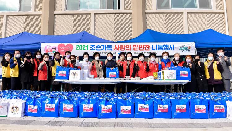 ¿©¼ö½Ã¿©¼º´ÜüÇùÀÇȸ(ȸÀå À¯³²¼ø)°¡ ³ª¼ ¹Ø¹ÝÂù ¼¼Æ® Æ÷Àå µî ÀÚ¿øºÀ»ç¸¦ µµ¿ÔÀ¸¸ç, À¾¸éµ¿°ú ¿©¼º´ÜüÇùÀÇȸ ȸ¿øµéÀÌ Á¶¼Õ°¡Á· ¹× Ãë¾à°èÃþ 150¼¼´ë¿¡ Á÷Á¢ Àü´ÞÇØ Àǹ̸¦ ´õÇß´Ù. ¿©¼ö½Ãº¸°Ç¼Ò´Â ¾î¸°ÀÌ ¿µ¾çÁ¦ µîÀ» Áö¿øÇØ ºÎÁ·ÇÑ ¿µ¾ç±îÁö ì°å´Ù.