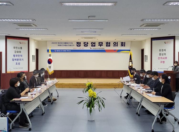 Àü¶ó³²µµ¼±°Å°ü¸®À§¿øÈ¸´Â ¿ÃÇØ ½Ç½ÃÇÏ´Â Á¦20´ë ´ëÅë·É¼±°Å¿Í Á¦8ȸ Àü±¹µ¿½ÃÁö¹æ¼±°Å¸¦ ¾ÕµÎ°í 26ÀÏ 1Ãþ ´ëȸÀǽǿ¡¼ Á¤´ç¾÷¹«ÇùÀÇȸ¸¦ °³ÃÖÇß´Ù.