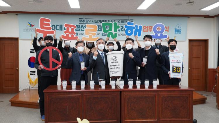 ±¤ÁÖ±¤¿ª½Ã¼±°Å°ü¸®À§¿øÈ¸(ÀÌÇÏ ±¤Áֽü±°üÀ§)°¡ 9ÀÏ ½Ç½ÃÇÏ´Â Á¦20´ë ´ëÅë·É¼±°ÅÀÇ ÅõÇ¥Âü¿©¸¦ µ¶·ÁÇϱâ À§ÇØ Ä¿ÇÇÀü¹®Á¡ÀÎ ¹úũĿÇÇ¿Í ÇÔ²² Ä¿ÇÇÄÅȦ´õ¿¡ ÅõÇ¥Âü¿© ¹®±¸¸¦ ³Ö´Â µî ´Ù¾çÇÑ È«º¸»ç¾÷À» ÃßÁøÇÑ´Ù.