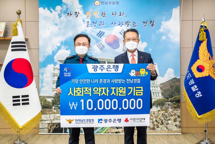 ±¤ÁÖÀºÇàÀº Áö³ 2019³â°ú 2020³â¿¡µµ Àü³²°æÂûû¿¡ »çȸÀû ¾àÀÚ Áö¿ø±â±ÝÀ» °¢°¢ 1000¸¸¿ø¾¿ Àü´ÞÇÑ ¹Ù ÀÖ´Ù.