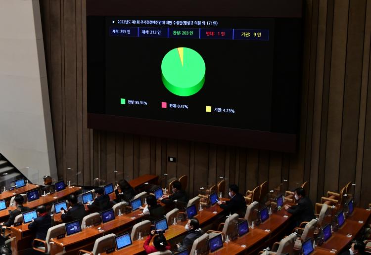 21ÀÏ ¿¸° ±¹È¸ º»È¸ÀÇ¿¡¼ 16Á¶9000¾ï¿ø ±Ô¸ðÀÇ 2022³âµµ 1Â÷ Ãß°æ¾ÈÀÌ Åë°úÇß´Ù. Áö³´Þ 24ÀÏ Á¤ºÎ°¡ Á¦ÃâÇÑ 14Á¶¿ø ±Ô¸ð¿¡¼ 3Á¶3000¾ï¿øÀ» Áõ¾×Çϰí, ¿¹ºñºñ 4000¾ï¿øÀ» °¨¾×ÇÏ¸é¼ 2¾ï9000¾ï¿ø ¼øÁõÇß´Ù.