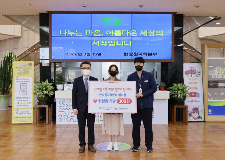 Çѱ¹¼ö·Â¿øÀÚ·Â(ÁÖ) ÇѺû¿øÀڷº»ºÎ(º»ºÎÀå õ¿ëÈ£)´Â Áö³ 15ÀÏ ÇѺû¿øÀü Á÷¿øµéÀÌ ±âºÎÇÑ ÇåÇ÷Áõ 300¸Å¸¦ Çѱ¹¹éÇ÷º´¾î¸°ÀÌÀç´Ü ±¤ÁÖ¼¾ÅÍ¿¡ ±âÁõÇß´Ù.