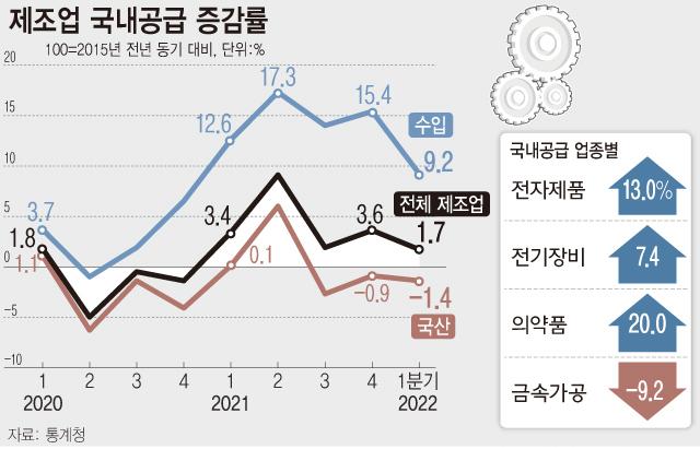 1ºÐ±â Á¦Á¶¾÷ ±¹³»°ø±Þ 1.7%¡è¡¦¼öÀÔºñÁß ¿ª´ë ÃÖ´ë